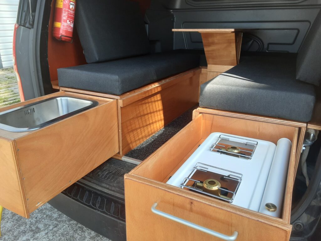 Wij kunnen van uw (bedrijfs)bus een leuk functioneel campertje maken die eenvoudig weer teruggebracht kan worden naar het origineel. Wij hebben een concept ontwikkeld waarbij alles snel en simpel in en uitgebouwd kan worden.