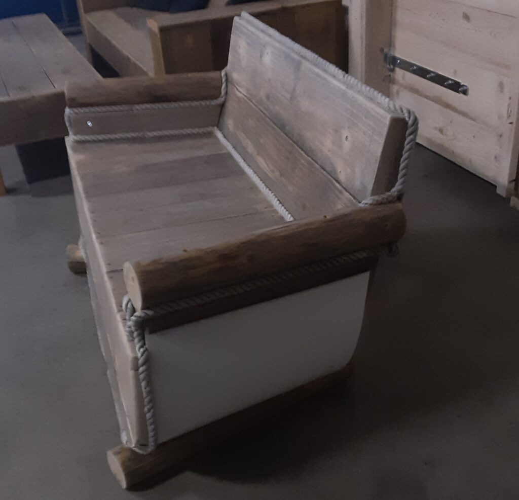 Ook maken wij dus van oude boot(onder)delen meubels. Wij kopen oude niet meer te herstellen (zeil)boten waarvan wij diverse (onder)delen gebruiken om een uniek meubel of accessoires van te maken zoals: tafels, lampen, kasten, bankjes, enz.