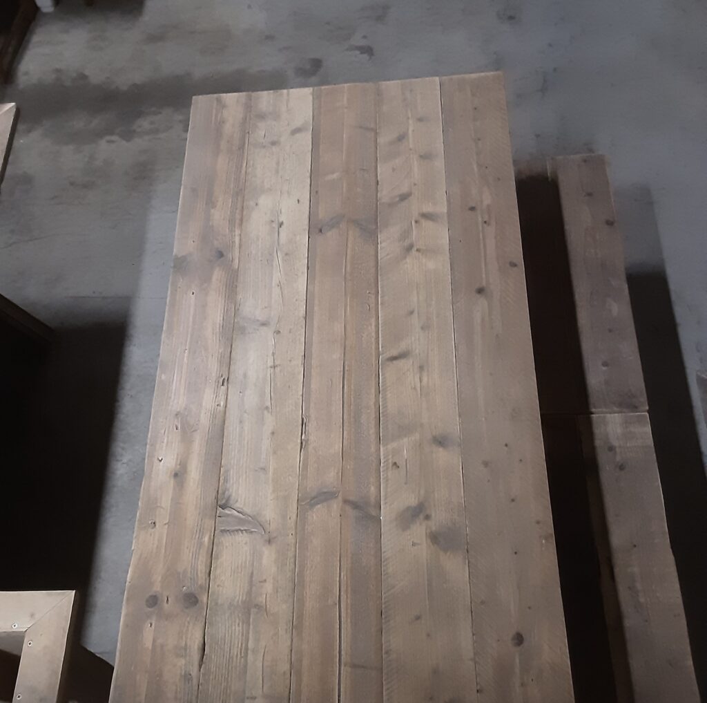 Oud steigerhout zijn planken die in de bouw o.a. zijn gebruikt door timmerlieden, metselaars en schilders. Deze planken zijn jaren gebruikt in weer en wind  en zijn grijzig geworden door het cement en andere bouwmaterialen. Vaak zijn ze ook beschadigd en dit geeft allemaal de mooie unieke uitstraling die wij zoeken om onze meubels van te maken.