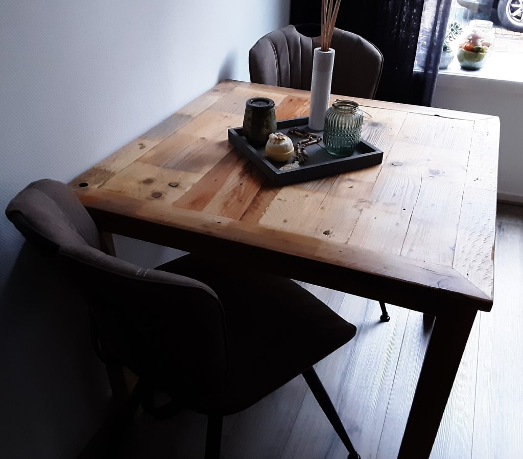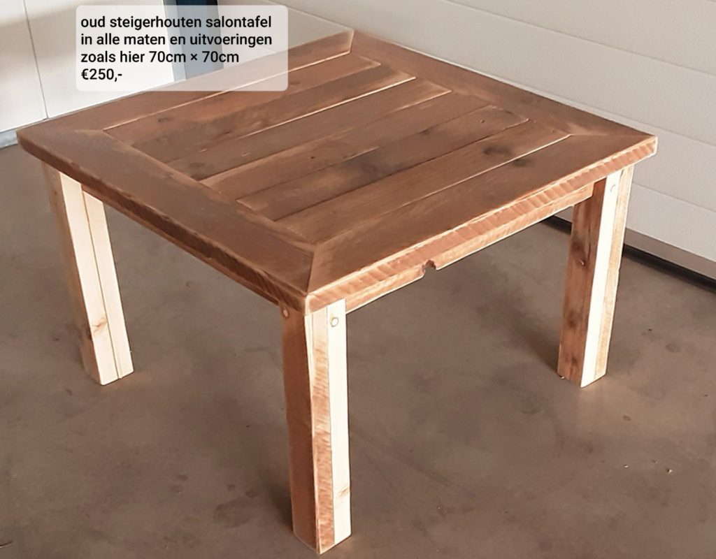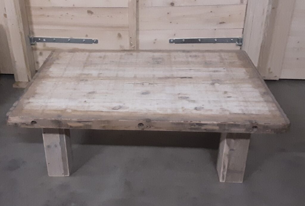 Oud steigerhout zijn planken die in de bouw o.a. zijn gebruikt door timmerlieden, metselaars en schilders. Deze planken zijn jaren gebruikt in weer en wind  en zijn grijzig geworden door het cement en andere bouwmaterialen. Vaak zijn ze ook beschadigd en dit geeft allemaal de mooie unieke uitstraling die wij zoeken om onze meubels van te maken.